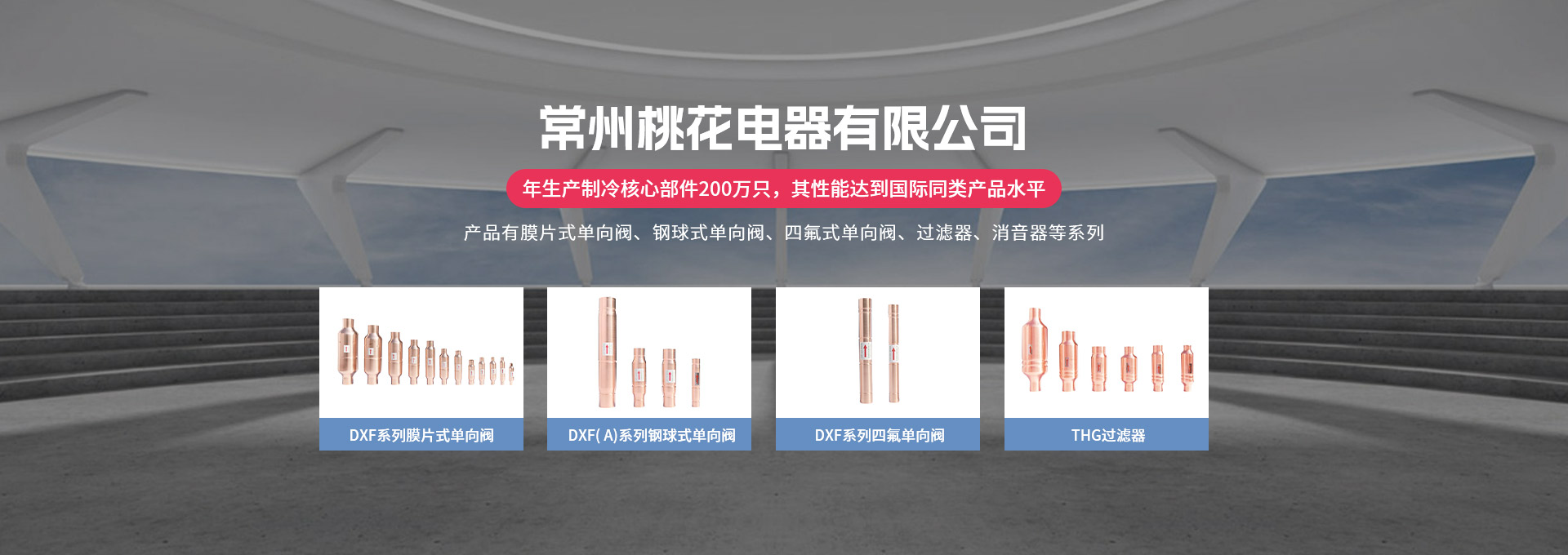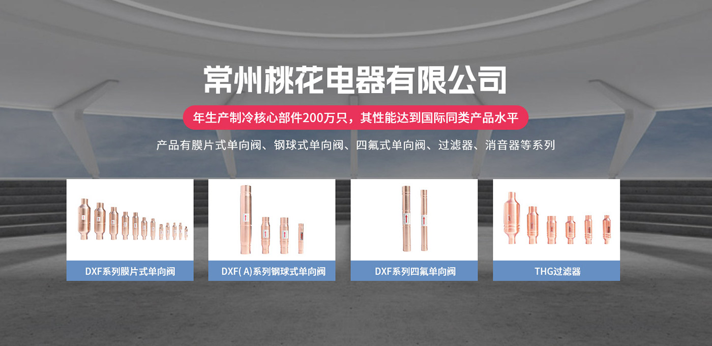常州桃花電器有限公司地處中國(guó)長(zhǎng)江“金三角”之稱的上海至南京高速公路、城際高鐵、常州高新經(jīng)濟(jì)技術(shù)開發(fā)區(qū)路段,交通便利、技術(shù)力量十分雄厚。它是集研究、開發(fā)設(shè)計(jì)、制造和經(jīng)營(yíng)制冷核心部件的企業(yè),主要生產(chǎn)中央空調(diào)上使用的制冷部件。產(chǎn)品有膜片式單向閥、鋼球式單向閥、四氟式單向閥、過(guò)濾器、消音器等系列。年生產(chǎn)制冷核心部件200萬(wàn)只,其性能達(dá)到國(guó)際同類產(chǎn)品水平。  企業(yè)擁有先進(jìn)的科學(xué)技術(shù)、國(guó)際先進(jìn)的生產(chǎn)加工設(shè)備和精密的檢測(cè)儀器,并已通過(guò)ISO9001質(zhì)量體系及CE認(rèn)證,公司歷史悠久,2000年起,經(jīng)過(guò)長(zhǎng)期積累、沉淀,經(jīng)驗(yàn)豐富,從而保證了產(chǎn)品的高質(zhì)量、高性能、高耐用性。企業(yè)產(chǎn)品在國(guó)內(nèi)外市場(chǎng)具有較高的知名度,深受眾多中外品牌制冷客商的好評(píng)。主要客戶有約克、麥克維爾、美的、開利、特靈、頓漢布什、清華同方、天加等.并出口北美、歐洲、東南亞等地區(qū)。  高品質(zhì)產(chǎn)品是企業(yè)的保證,周到服務(wù)是合作友誼的承諾,企業(yè)本著“求